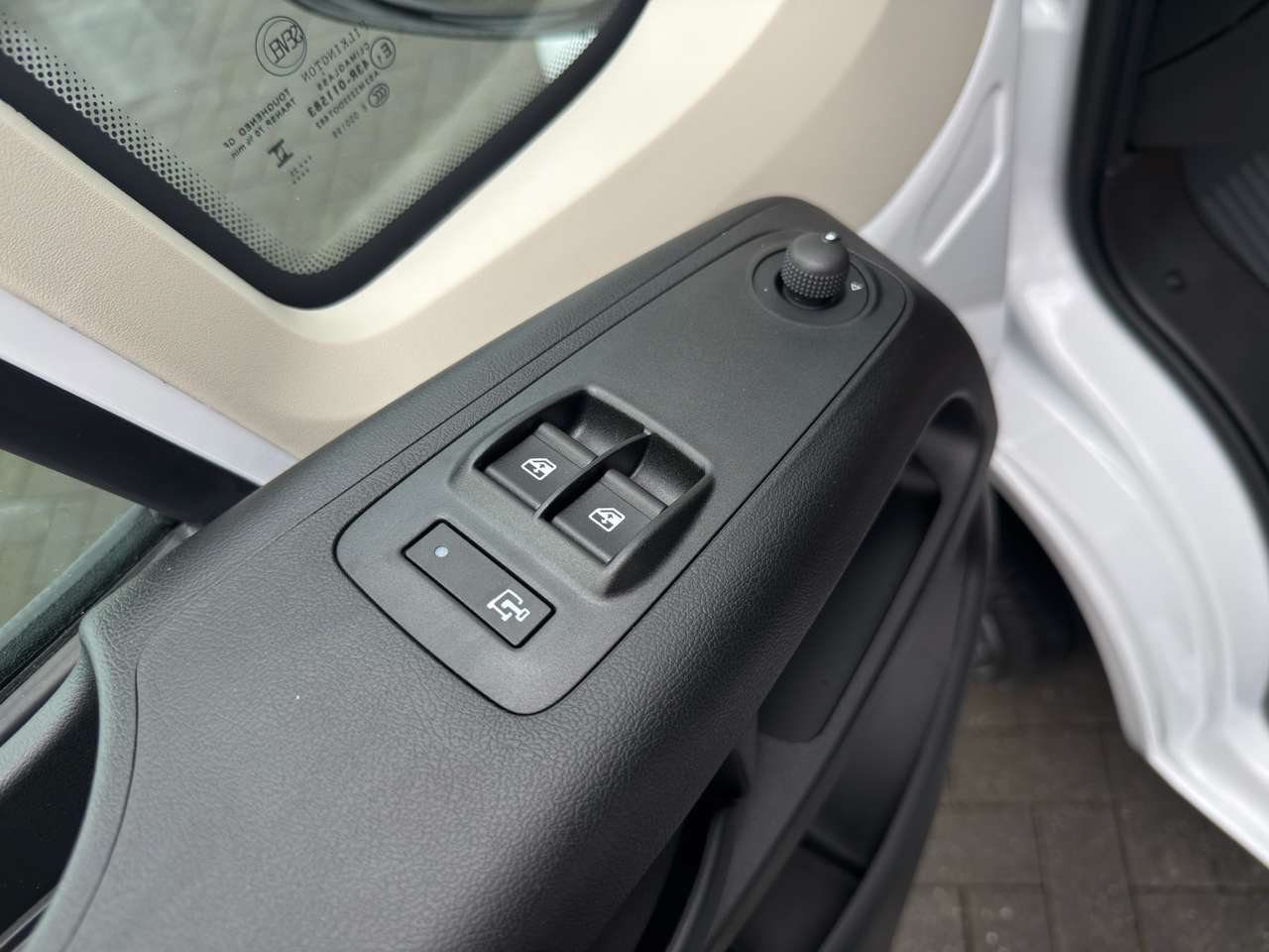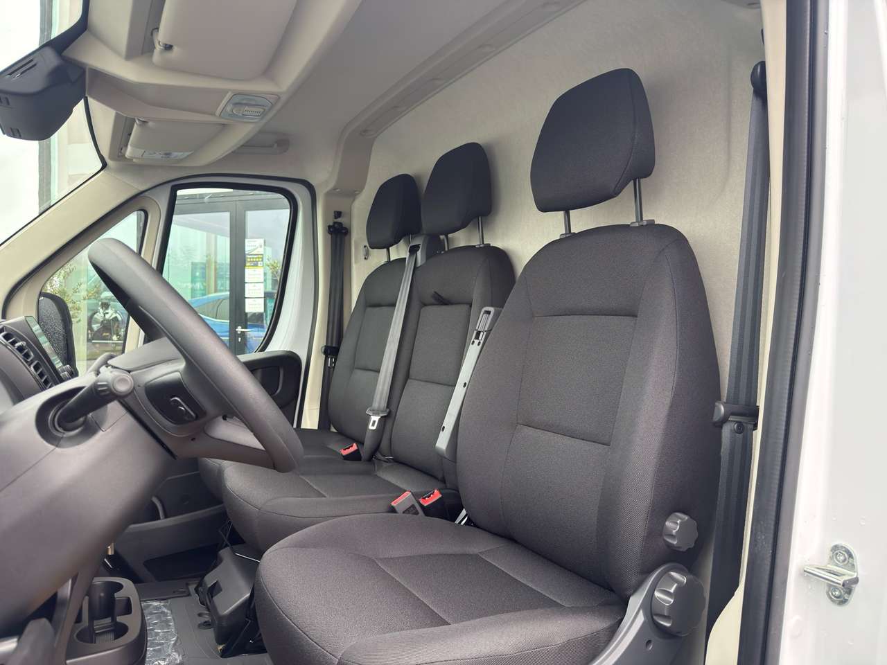Dark black upholstery, driver's seat adjustable in 6 directions, lumbar support on the driver's seat, armrest on the driver's seat, double passenger seat with foldable writing table